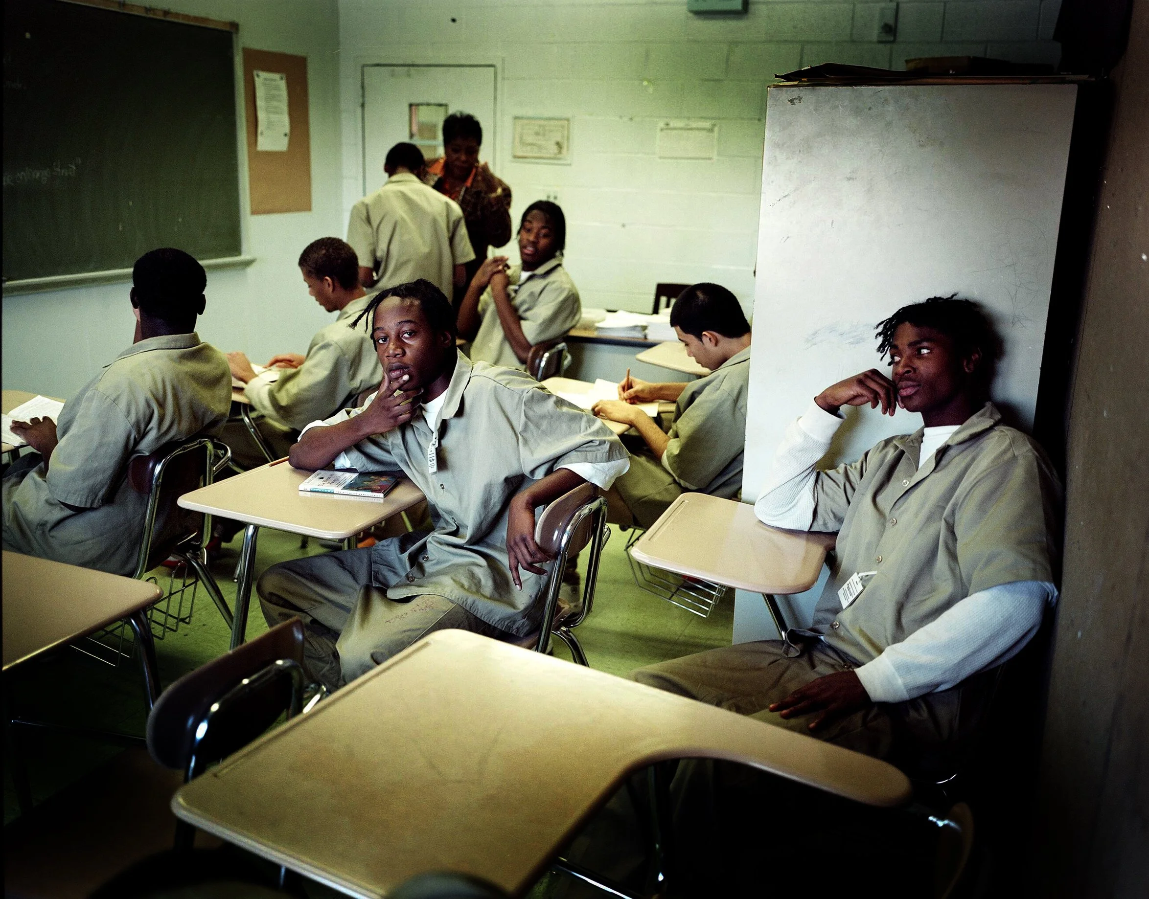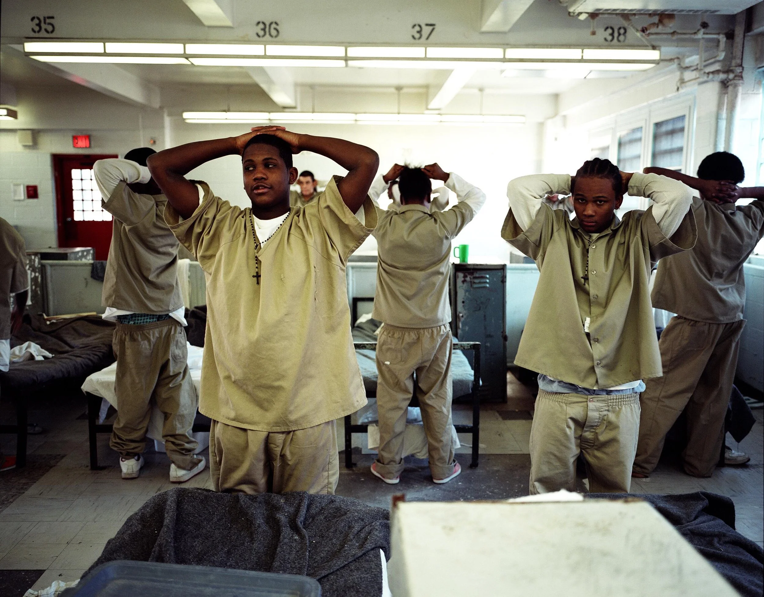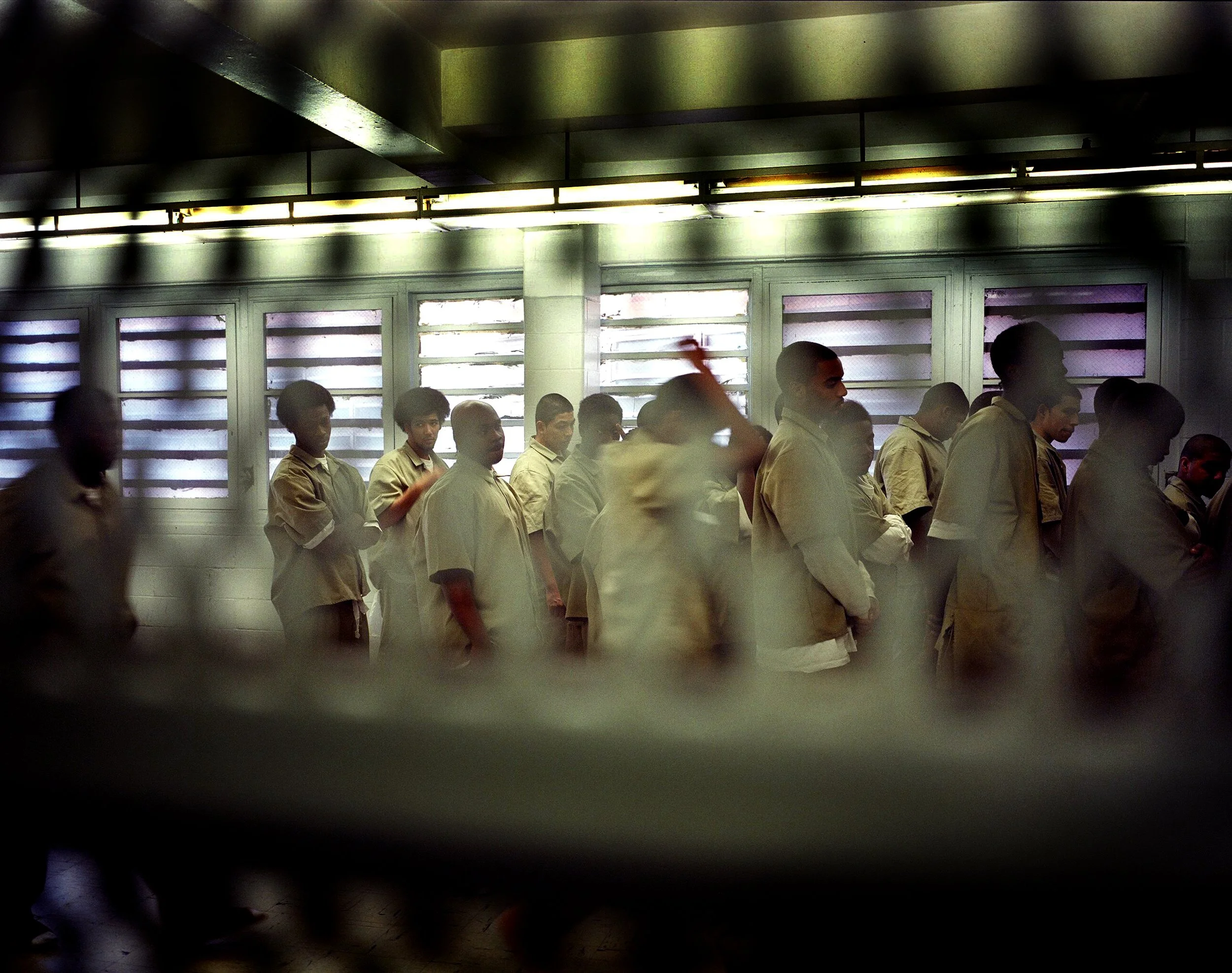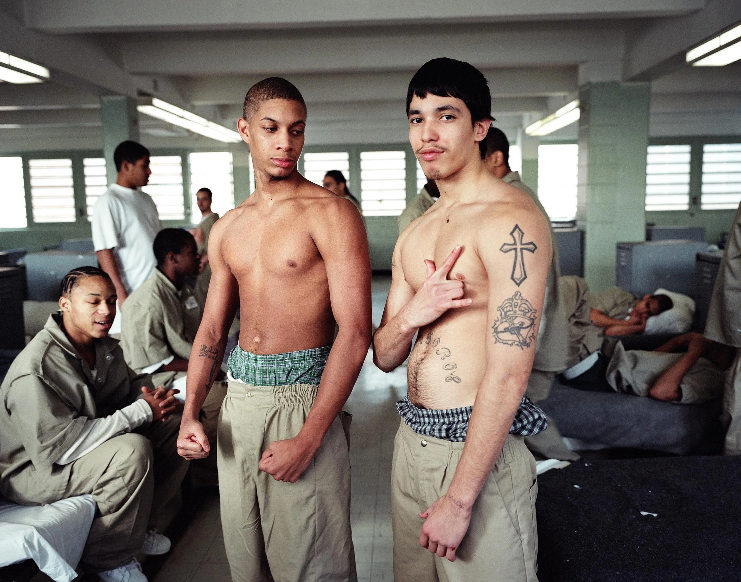 A selection of images depict teenagers held inside Rikers Island Jail. Harsh lighting, institutional walls, and the rigid presence of confinement emphasize how young they are in a space built for punishment rather than care. Together, the scenes underscore the tension between adolescence and incarceration, highlighting lives paused far too early.