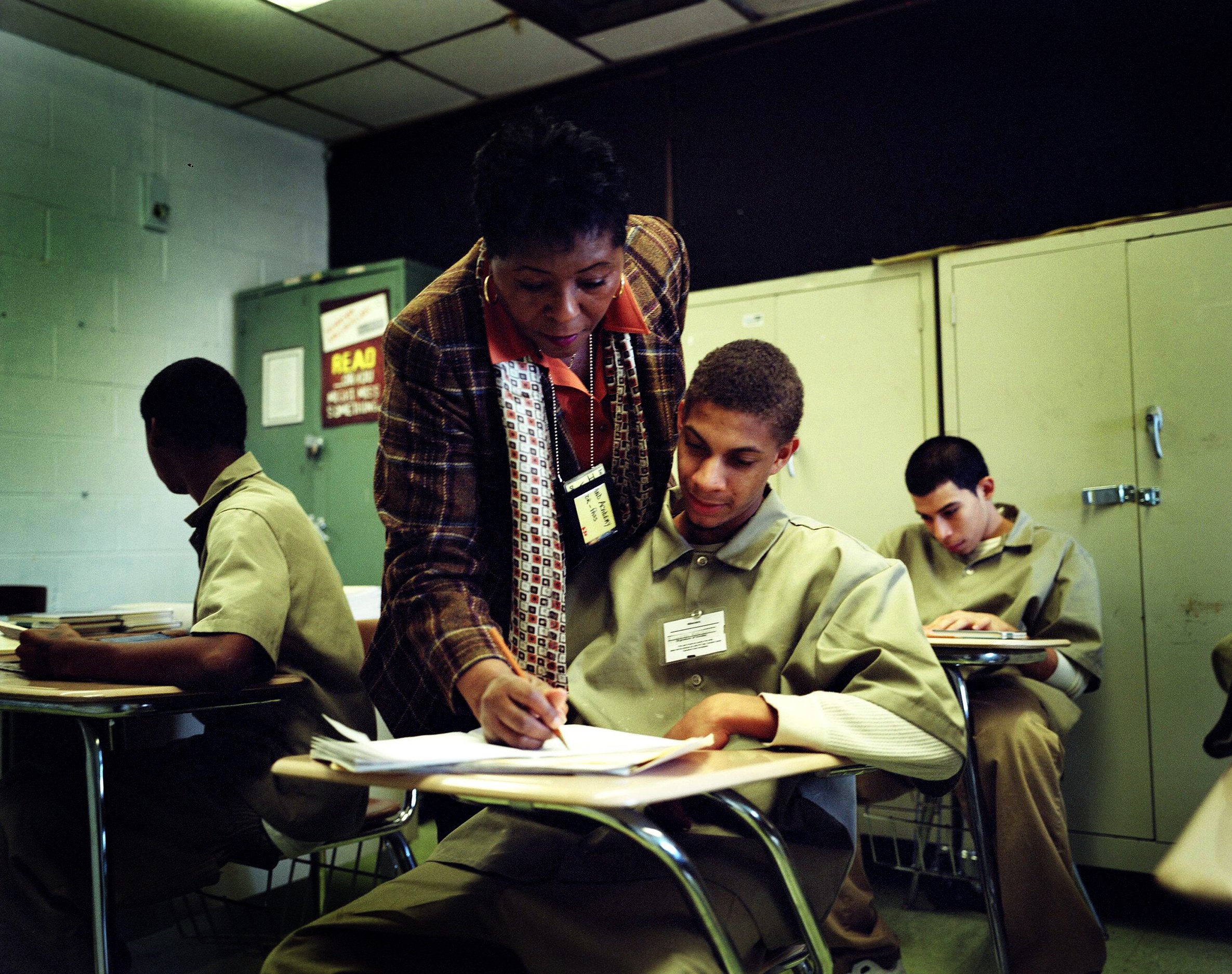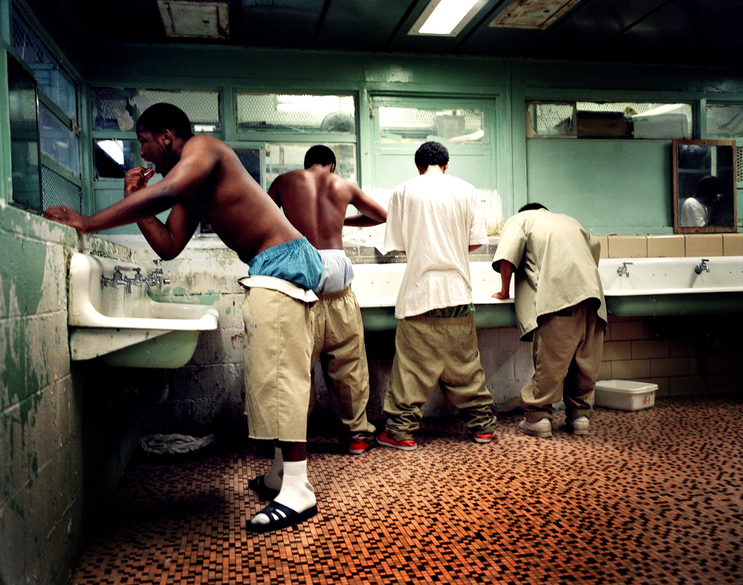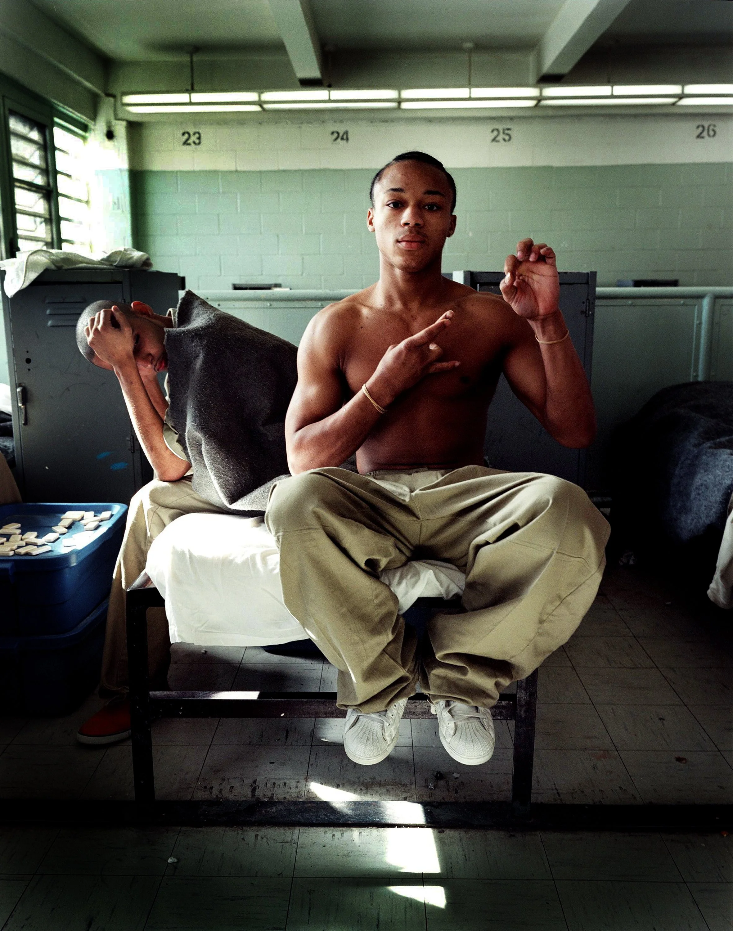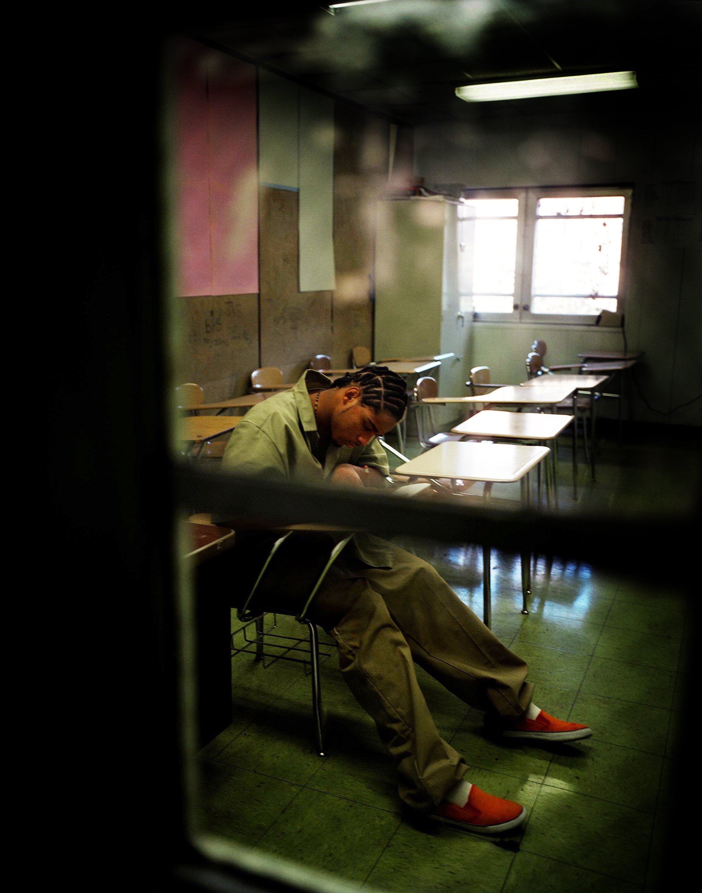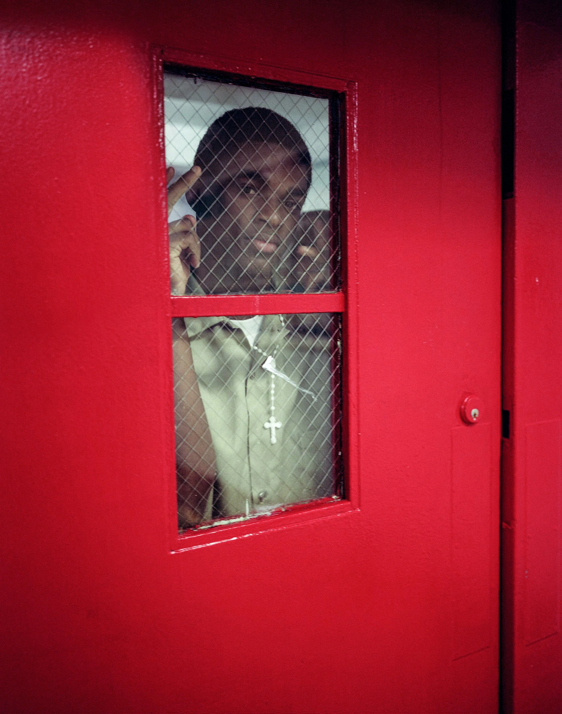 A selection of images depict teenagers held inside Rikers Island Jail. Harsh lighting, institutional walls, and the rigid presence of confinement emphasize how young they are in a space built for punishment rather than care. Together, the scenes underscore the tension between adolescence and incarceration, highlighting lives paused far too early.